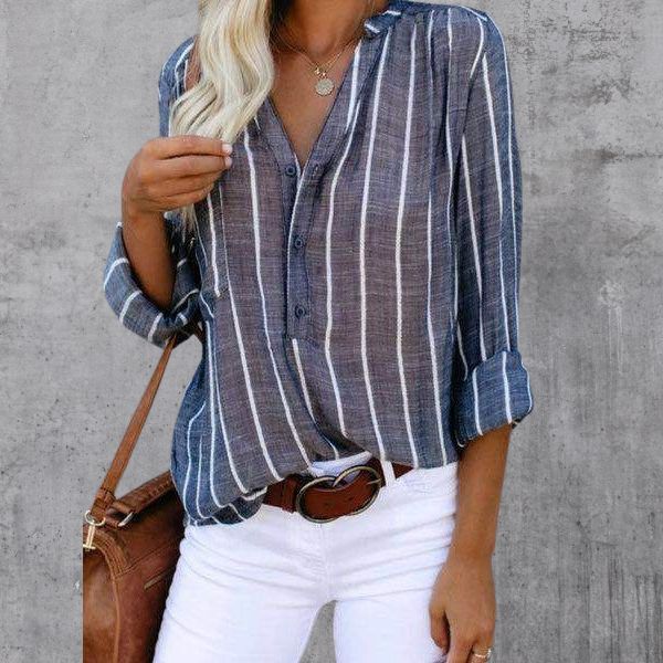 Women's casual striped button-down blouse