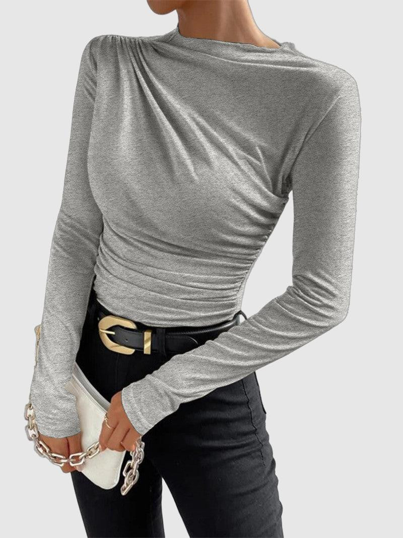 Amier - asymmetric collar draped long sleeve shirt
