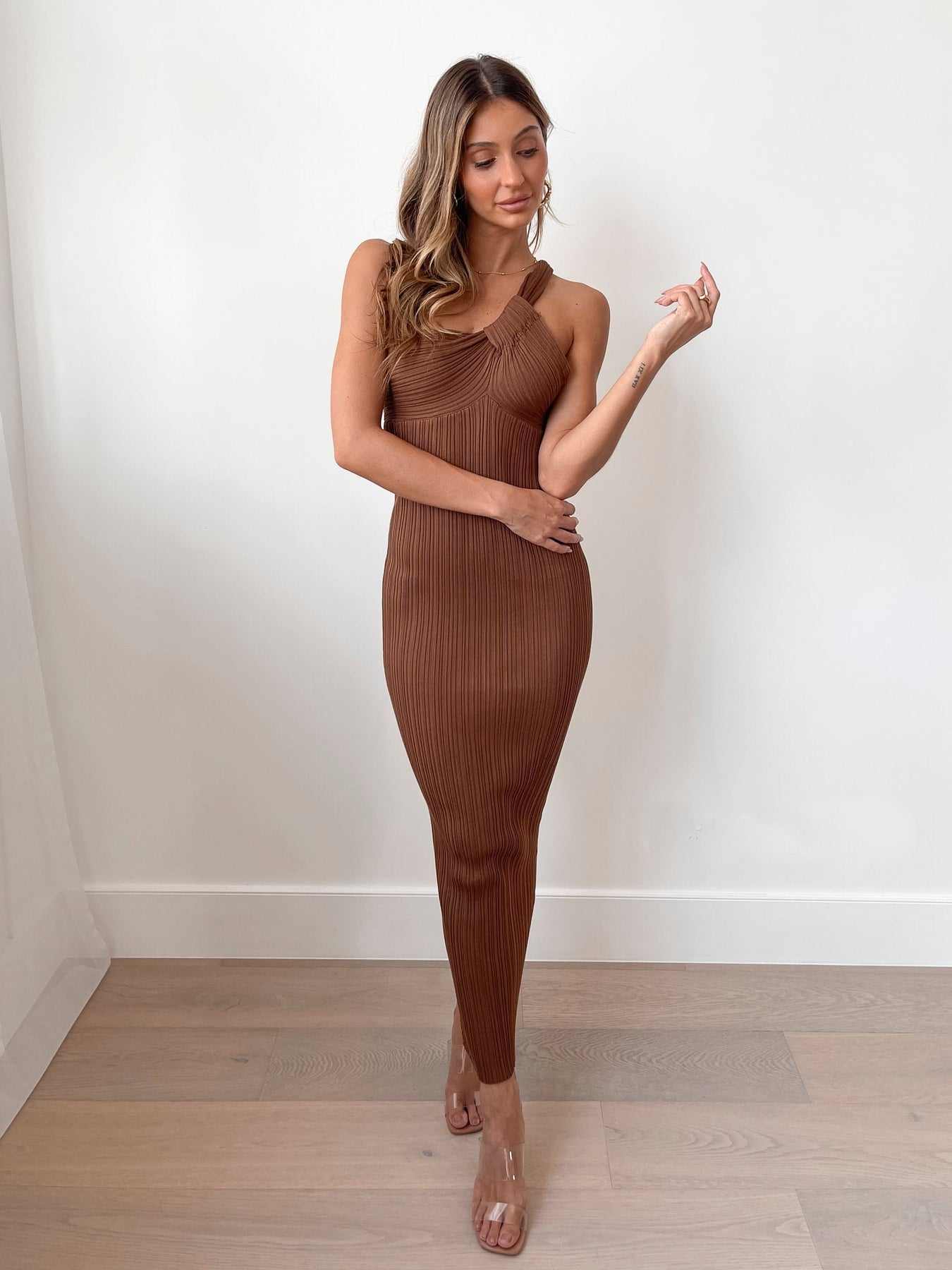 Turn heads and feel confident in the Hellen Knit Dress—sleek style and comfort come together in a timeless light chocolate hue.